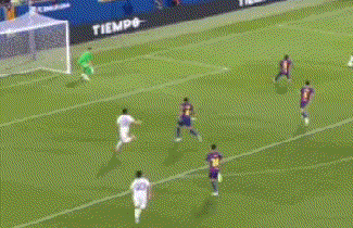 9分钟之后,科莫后场球员传球失误被断,费尔明断球之后杀至弧顶处,接着一脚远射轰开了科莫队的大门。